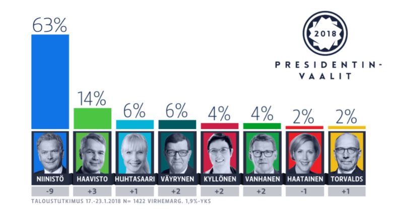 Sen voi ymmärtää, että demareista Sauli Niinistöä äänestää 60 % ja Pekka Haavistoa 12 %, mutta että Paavo Väyrynenkin saa 7 % kannatusta.