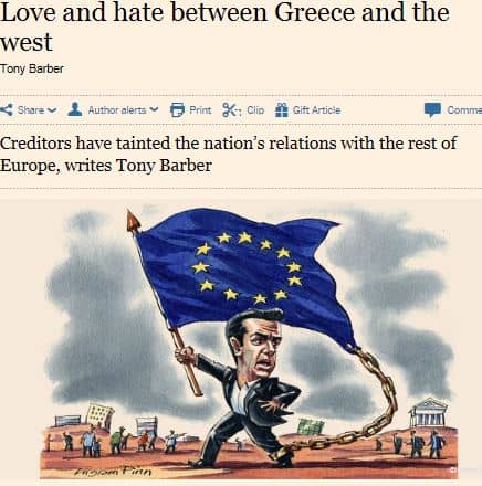 Ehkäpä kannattaa miettiä taustaksi Kreikan ja Euroopan historiaa ja siihen liityvää viha- rakkaus suhdetta, josta Tony Barber kirjoittaa FT:ssä.