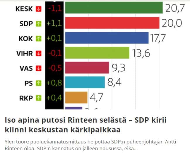 Kuten Yle uutisoi, on näillä gallupeilla vaikutusta SDP:n puheenjohtajakisaan. Juuri tänään Antti Rinne on saanut Venäjä-aiheisen asia-artikkelin 8.9.2016 Hesarin pääkirjoitussivulle. Jutun Antti lopettaa linjaukseen: