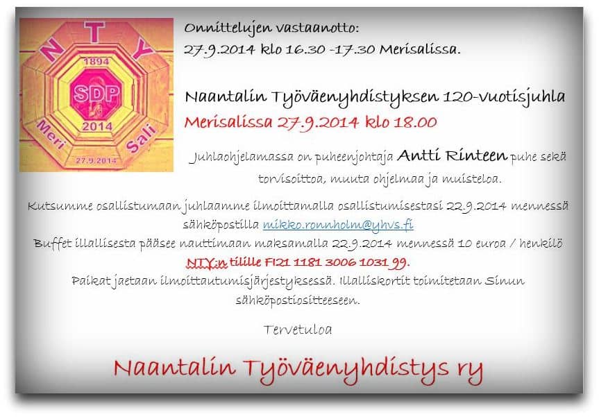 Kutsumme ystävämme juhlimaan kansamme. Naantalin