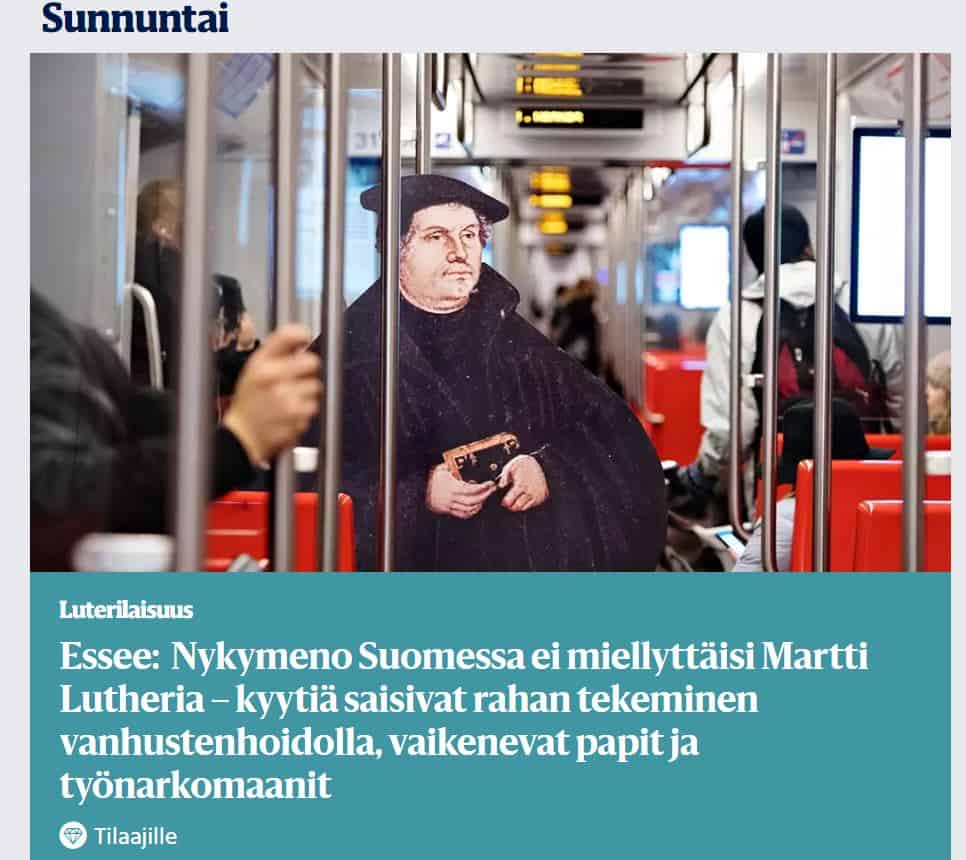 vie hakoteille. Tämä arkipäiväinen lutherilaisuus, jota ei sovi sotkea myöskään