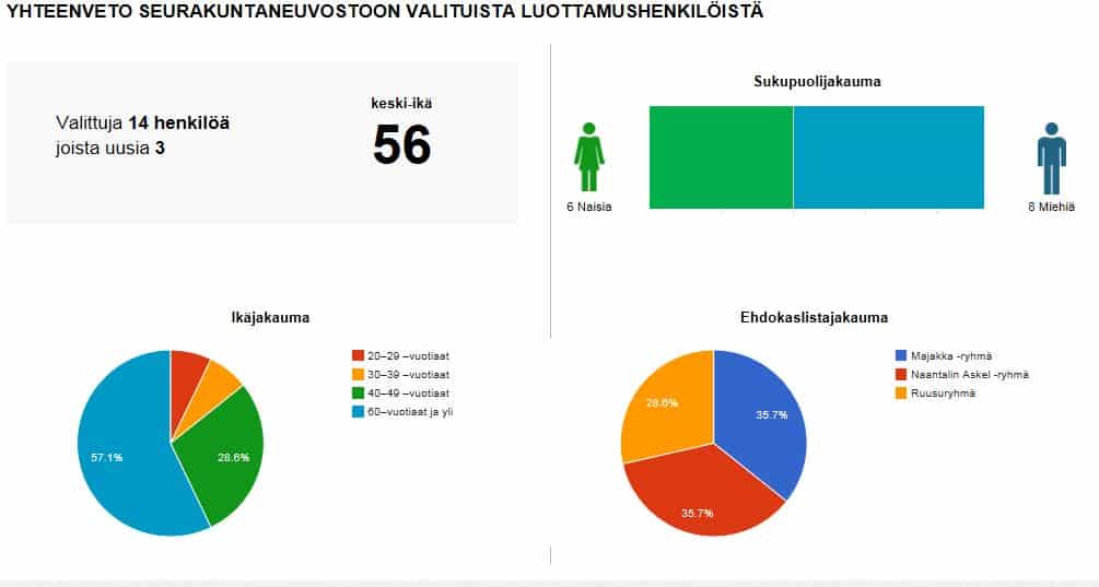 Tässä alla on Ruusryhmän valtuutetut ja kuvassa seurakuntaneuvoston grafikkaa. Onnittelemme hyvästä suuorituksesta.