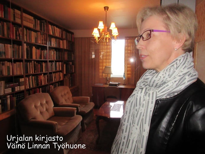 Aluksi tutustuimme kunnan kirjastossa sinne konstruoituun Väinö Linnan