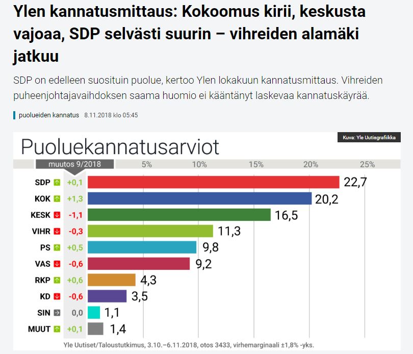 Ei merkittävää, sanotaan ehkäpä siksi, että sosialidemokraatit pitävät selvästi ykköspaikkaa.