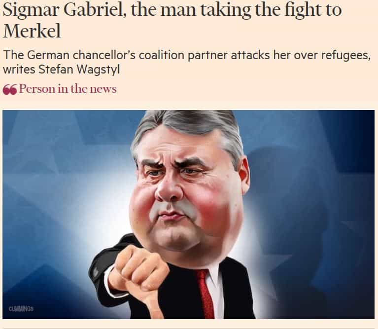 persoonaan Saksan varaliittokaslerista  Sigmar Gabrielista, jonka hän näkee haastava n Angela Merkelin.