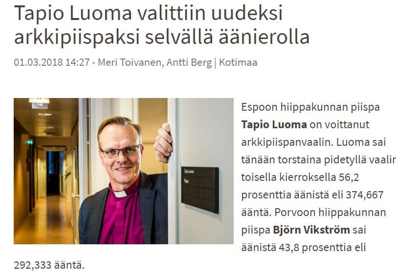 Tuleva arkkipiispa Tapio Luoma on tyytyväinen – silmin nähden aamutelkkarissa.
