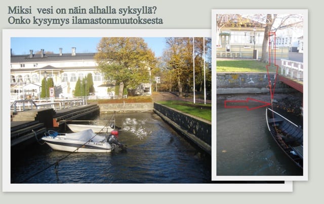Luonnonilmiöt aina silloin tällöin yllättävät ja ihmetyttävät. En ainakaan muista, että vesi olisi ollut tähän aikaan vuodesta näin alhaalla. Soutuvene juuttuu pohjaan.