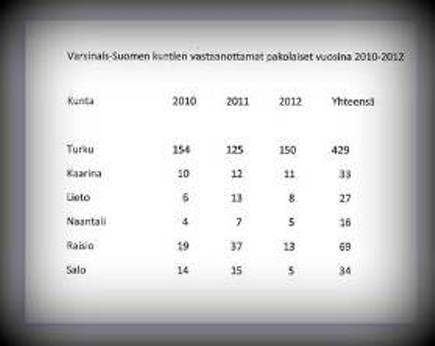 Naantalin suuri vuosien ongelma on ollut suhtautumine pakolaisiin. Täällä herran kukkarossa halutaan olla silmät sulkemalla erossa kurjasta maailmasta, maailmasta, missä kaikilla ihmisillä ei ole edes ihmisarvoisen elämän mahdollisuuksia. Suomi on ollut omalta pieneltä osaltaan valmis olemaan hädänalaisten avuksi. Pakolaisia on sijoitettu eri puolille maata ja viime vuosina joitakin myös Suomeen. Tässä on tilastoa, joka kertoo meidän osuudestamme.