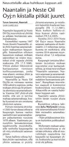 NAANTALIN KAUPUNGIN JA NESTE OIL OYJ:N VÄLISET NEUVOTTELUT