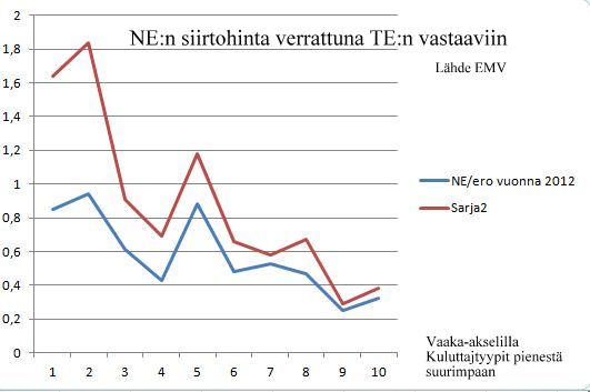 Mutta seikka, joka on avoimesti tuotava esiin on, että NE:n tulos tehdään hinnoittelemalla siirto entistä kalliimmaksi. Ero Turku Energiaan kasvaa ja Fortumiiin lähenee. Siis Naantali saamat osingot ovat tietyn tyyppistä piiloverotusta naantalilaisilta kuluttajilta. Hinta ero yhteensä laskien on enemmän kuin maksetut osingot.se tarkoitta, että liiketoiminta tuottaa vain kuluttajien kustannuksella.