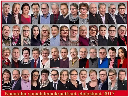 Kuvassa on Naantalin sosialidemokraattien 52 ehdokasta.