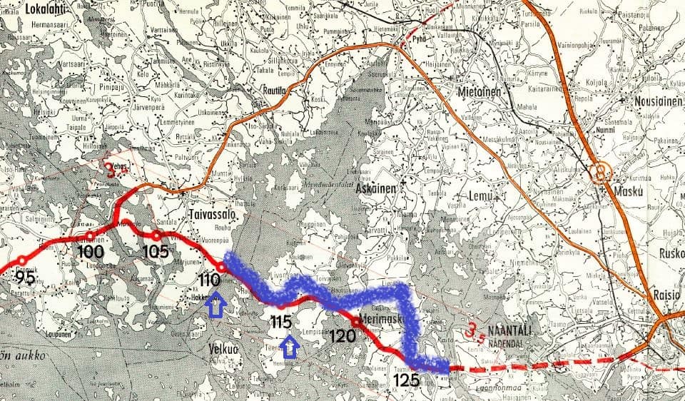 olevassa kartassa väli alkaa vähän ennen paalua 100 jatakuu melkein paalulle