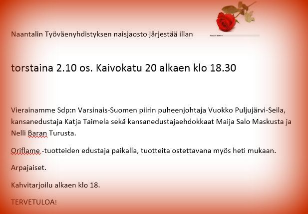 Naisjaoston syksyn avauskutsu ohessa.