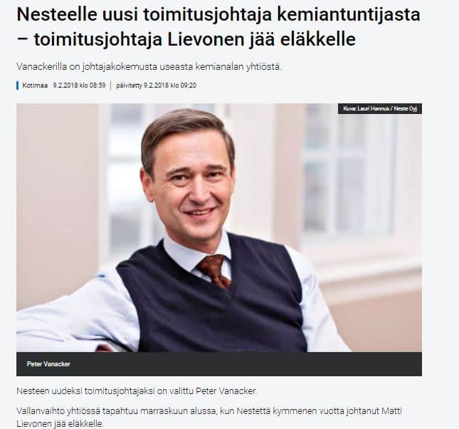 ”Odotan innolla, että pääsen jatkamaan Nesteen menestystarinaa ja avaamaan uusia mahdollisuuksia yhdessä Nesteen koko henkilöstön, hallituksen sekä johtoryhmän kanssa. Neste on hieno yhtiö, jossa yhdistyvät innovatiivinen ilmapiiri, erinomaiset suoritukset, globaali edelläkävijyys sekä henkilöstön innostus”, sanoo Peter Vanacker.