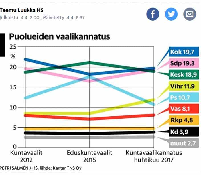 Kokoomusta nostava vaikutus. Perussuomalaiset hyötyvät myös aktiivisista paikoin