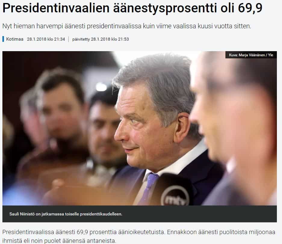 prosentti oli korkea ja Niinistön asema maan vahvimpia, ja se sopii kesäpääkaupungille.