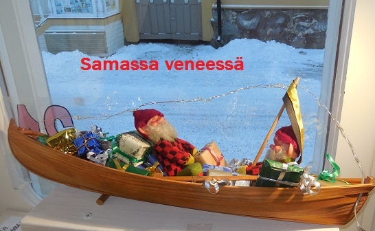 Tulevista tuulista emme tiedä, luonto sen päättää. ja kuntaveneen menoon vaikuttaa valtio. Mutta venettä ei saa päästää virran vietäväksi; pitää olla tieto, taito ja tahto, sillä naantalilaiset ovat samassa veneessä, ja yhdessä mennään ja pidetään kaikki veneessä. parhaiten se onnistuu, kun naantalilaiset päättävät osallistua ahkerasti kuntavaaleihin.