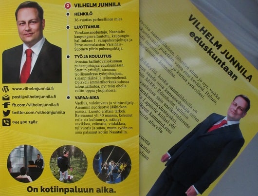 Täältä vasemmalta katsottuna huomaa, että kuvassa Kokoomus on pienenä mustana ala oikeassa nurkassa, muutoin ollaan lainatuilla eväillä.