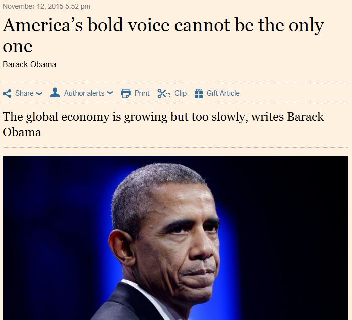 Presidentti esitti 12.11.2015 FT:ssä viiden kohdan ohjelmaa G20 kokoukselle: