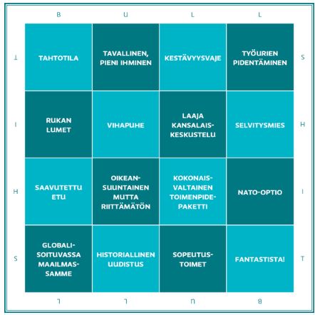 Jos omaa oikean tahtotilan ja hallitsee asianmukaiset termit, poliitikko voi osallistua laajaan kansalaiskeskusteluun työuraansa jatkaen ilman kestävyysvajetta. Näin sanailee Ylen politiikan toimituksen päällikkö ja esittelee kuvan taulukon käyttöä ylen sivuilta.