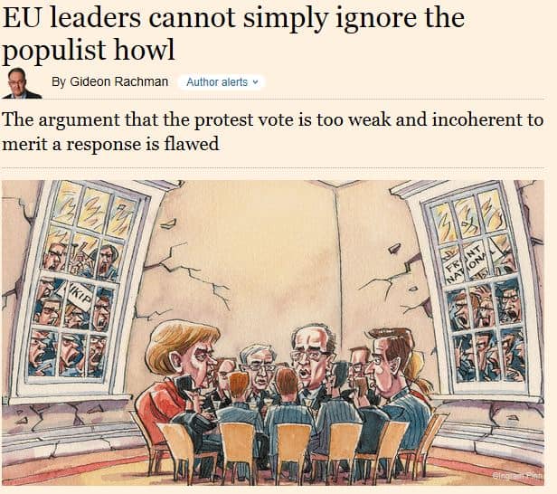 Gideon Rachman aloitta FT:n kolumninsa yllä olevalla tavalla. Hän epäillee arviota, että päätelmä populistien 25