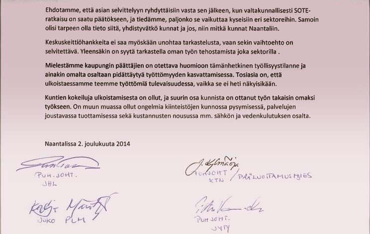 Henkilöstöä edustavat järjestöt ja pääluottamusmiehet ovat tehneet asiasta