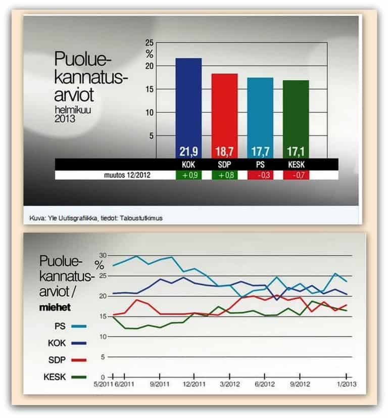 Yle tutkii puoluekannatusta ja sai SDP:n kakkoseksi, tosin virhemarginaalin sisällä.