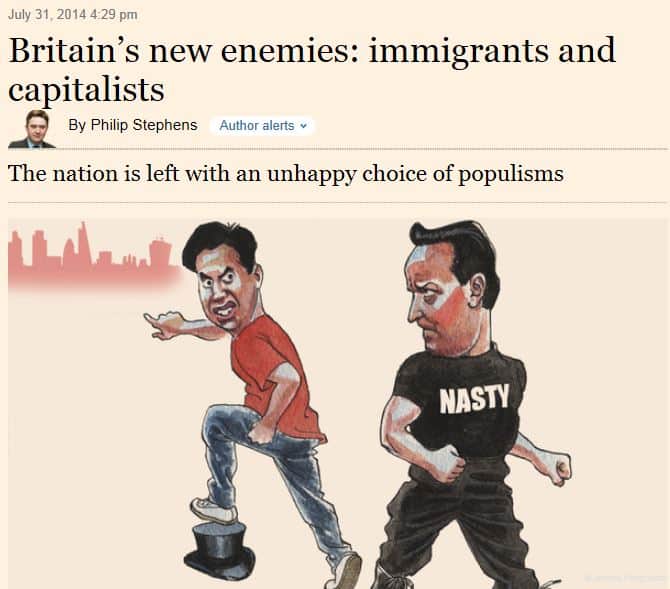 Philip Stephens kertoo toryjen kaampailevan muukalaisvihalla ja Labour nostattaa kapitalistikiukkua.