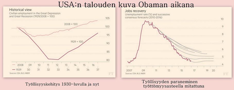 paremmin kuin 1930-luvulla ja työllisyyskehitys on ollut Obaman aikana