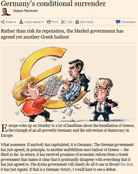 on tyhjänpäiväistä eikä nöyryyttävän valloituksen uskota toteutuvan. Pari kovaa kolumnistia FT:ssä erilaisilla