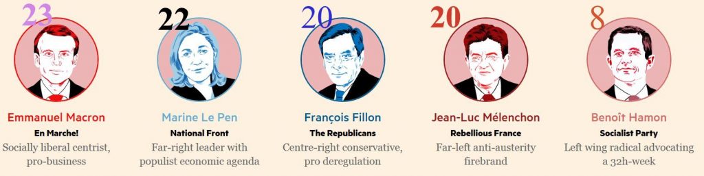 Mélenchon on ollut vahvassa nousussa ja on tällä hetkellä virhemarginaalin