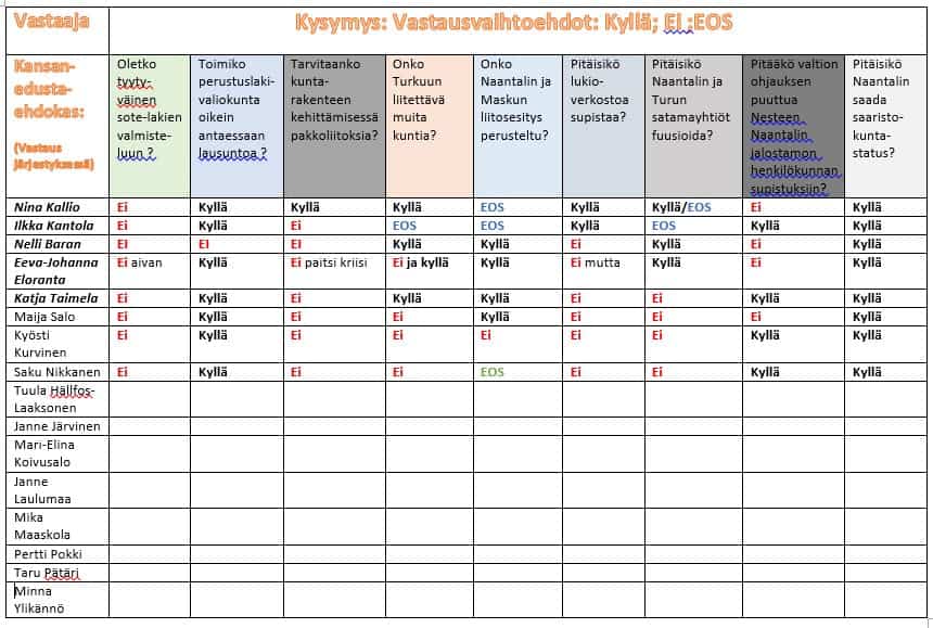 Saaristokuntastatusta Naantalille puolustava kaikki vastanneet.