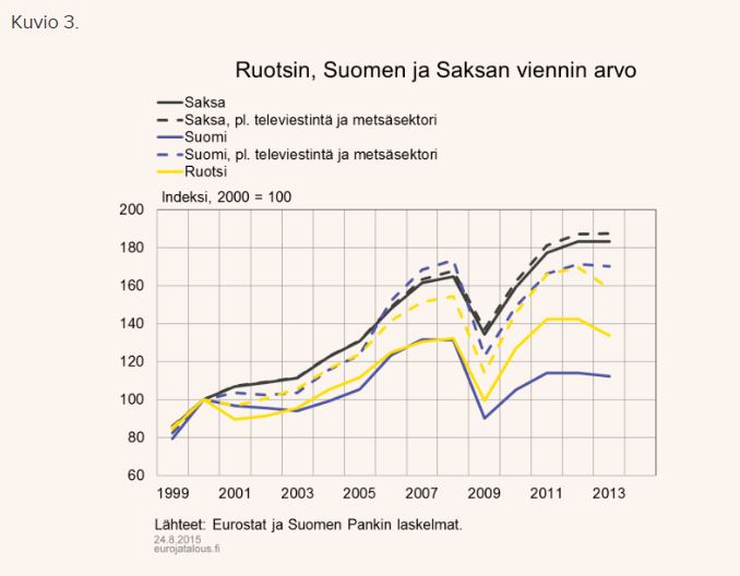 identtisesti. Euromaa Saksan vienti on kasvanut selvästi nopeammin kuin Ruotsin