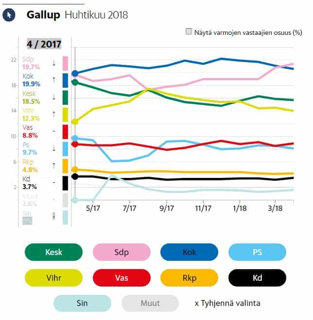 Huh huh huhtikuuta, huhtikuu on pehkupuuta, sanotaan ajankohdan sään vaihteluista. Politiikassa sen sijaan näyttä olevan vakaa pohjaväre, joka sataa SDP:n laariin.