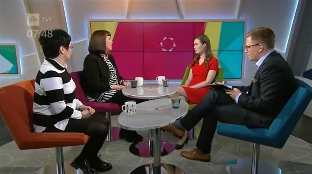 Aamutelkkarissa Sanna Marin oli tapannsa mukaisesti sanavalmis ja selkeä ja sen lisäksi olemukseltaan ystävällinen. Haastajilla ja toimittajalla lokasahtivat leuat, kun Sanna heitä opetti – ei ylimielisesti mutta itsevarmasti.