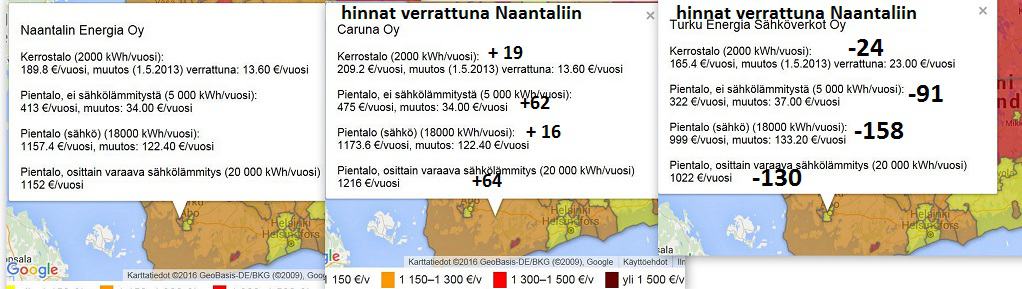 Naantalin ja Turun hintaero on sikäli realistinen, että Turun hinnat olisivat Naantalin hintoja, jos Naantali olisi Turun osa eli kuvasta näkee kukin, paljonko omia rahoja säätyisi, jos Turku jakelisi Naantaliin.
