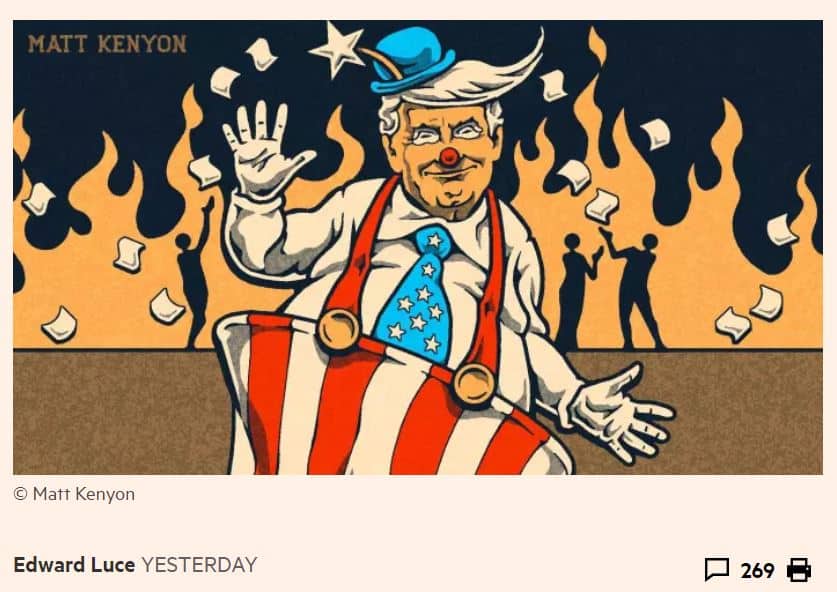 Donald Trumpin sirkustoiminta on pahemman puoleinen harhautus, otsikoi Edward Luce FT:n juttunsa, jossa hä väittää, että vaikka presidentti sitoutui kuivaamaan suon, niin hän onkin onkin myynyt USA:n korkeimman