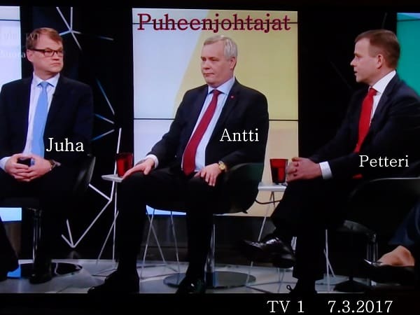 Juha Sipilän ja Antti Rinteen väittely oli pääministerisarjaa; kasvatusasiostakin saattiin tietoa ja selkeitä erojakin oli varhaiskavatuksen järjestämisen keinoissa. Antti painotti naisten asemaa tulevan naistenpäivän kunnaiksi, mutta ymmärsi, ettei kotihoitoakaan pidä mennä suin päin lopettamaan. Rahan puuttella Sipilä vastusti uudistuksia.