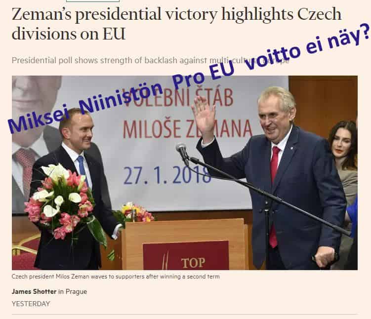Miloš Zeman toimii seuraavan kauden Tšekin presidenttinä,
