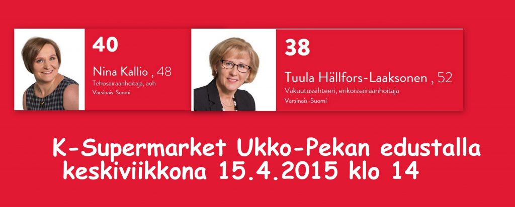 Keskiviikkona 15.4 klo 14 alkaen tavattavissa K-supermarket