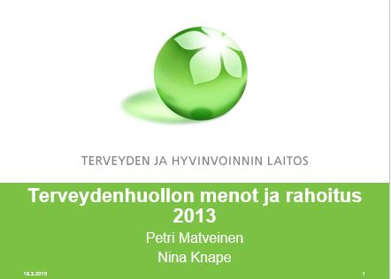 •Vuonna 2013 terveydenhuoltomenojen