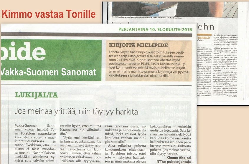 Vakka-Suomen Sanomat aviitti Forsblomin Tonin, kok vaalistarttia.