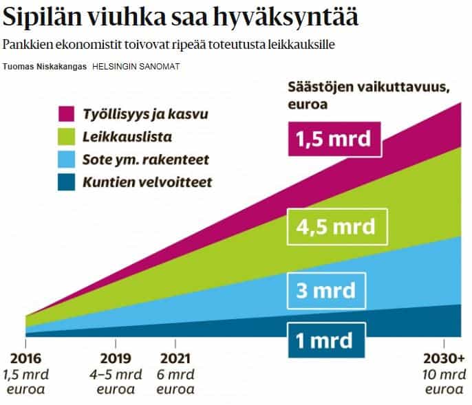 edellisen hallituksen ajattelutapaan; ajan mittaan säästöjä tulee ja dynaamiset