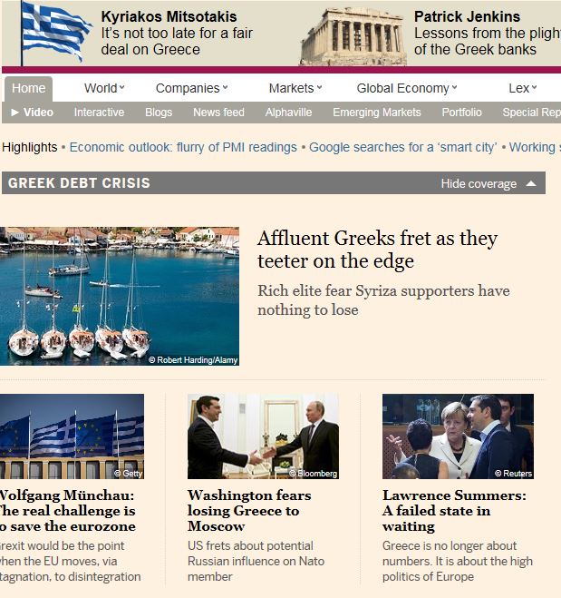 FT.n verkkolehden etusivu on Kreikka