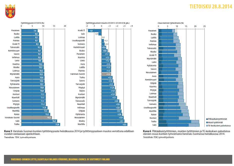 Varsinais-Suomen liitto on muokannut maakunnan tilasta työttömyyttä koskevan