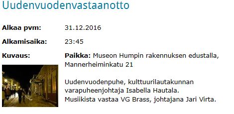 Uuden Vuoden vastaanotto Vanhalla Torilla