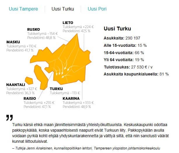 Ylen tekstissäkin kerrotaan: ”Monesti liitosseudut ovat tehneet yhteistyötä jo ennen rajojen poistamista. VATT:n mukaan hyödyt on voitu ulosmitata jo ennen liitosta.”