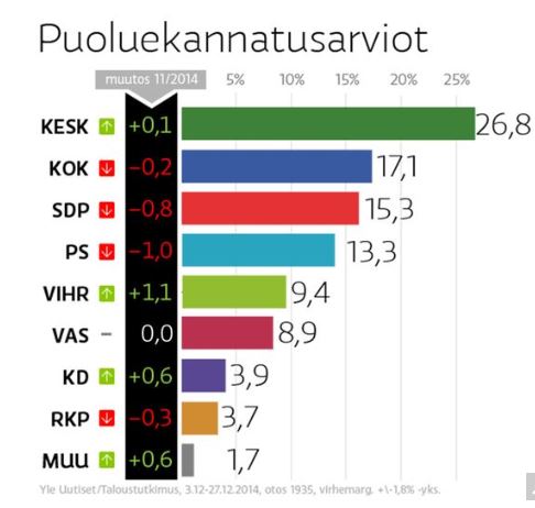 Kokoomuksen ero demareihin ei valitettavasti mahdu virhemarginaaliin eli jäljessä ollaan. Kaikki tämä -siis haastatteluajankohdat olivat joulua edeltänyttä elämää. Kun Joulu katakaisee, niin viel’ uusi vuosi paljon muutta voi.