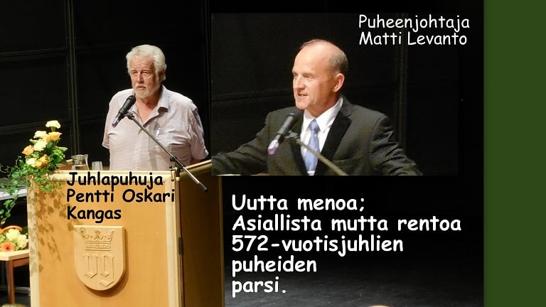 naurunpuuskiin. Juhlapuhujan perusmuotiin ei puhe istunut ja niin pistettiin yleisö