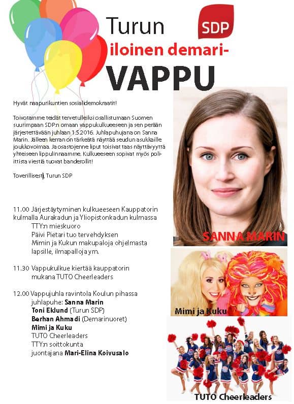 Raisiolaiset saavat Sanna Marinin vieraaksi torilleen vappuna ennen Turun juhlia, joista ohessa kutsu.
